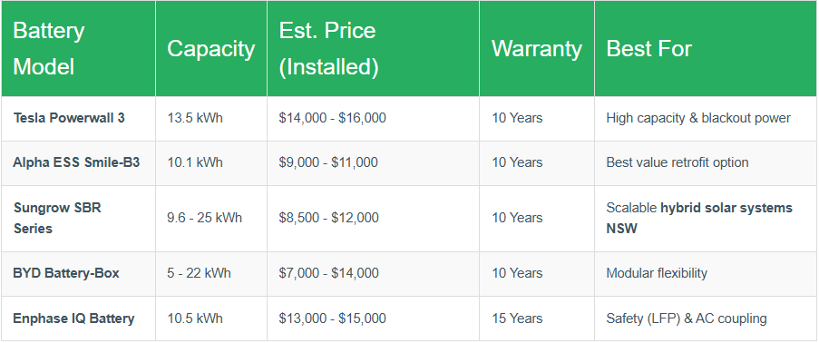 Top Solar Battery Options for NSW Homes