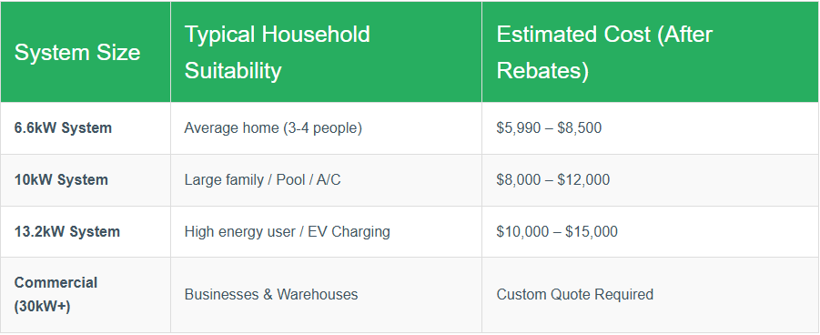 When budgeting for a solar installation in NSW, it is crucial to look at the "out of pocket" cost—the price you pay after federal rebates are applied. In 2026, prices have stabilized, offering excellent value for high-efficiency systems.